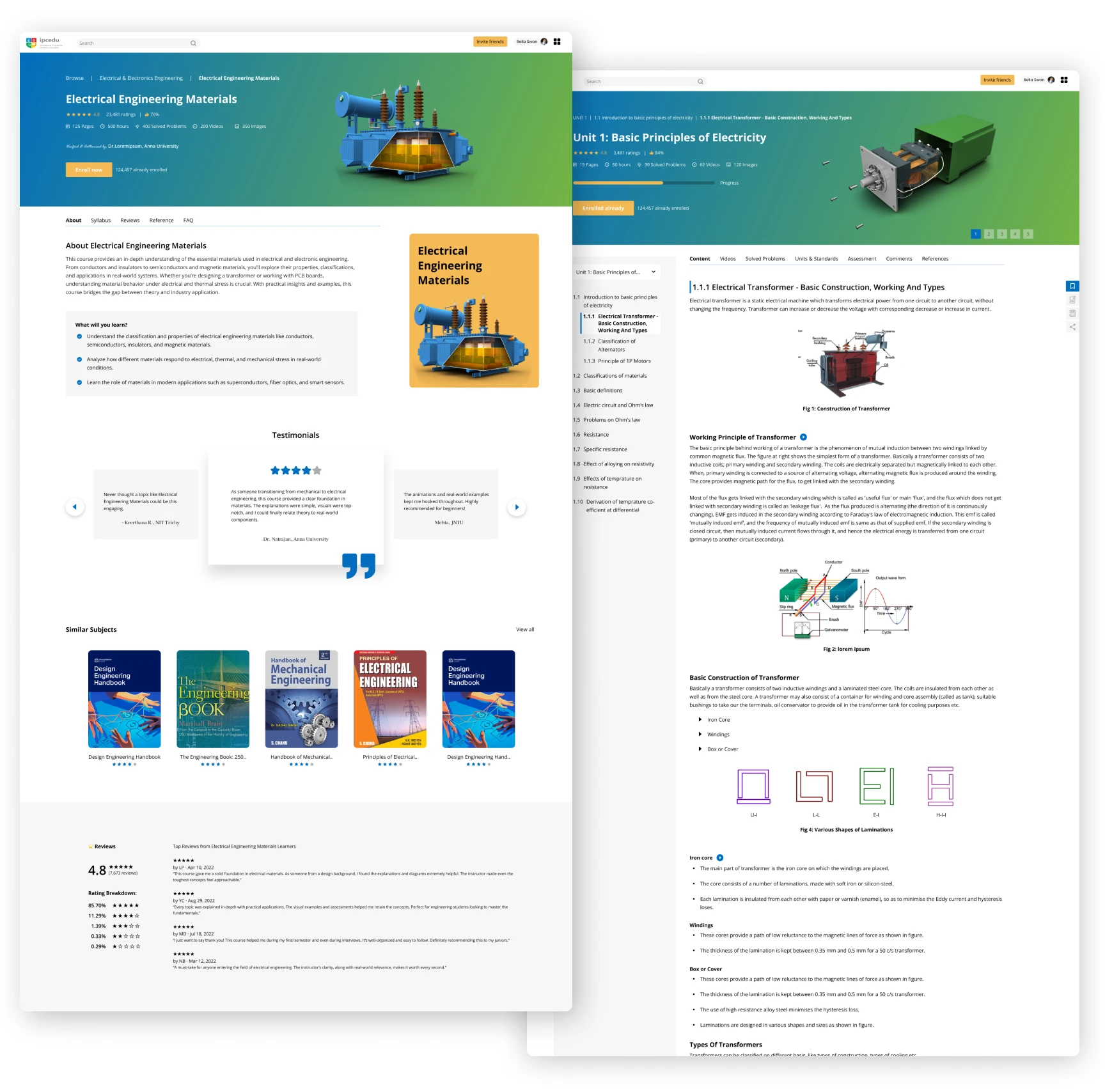 The module became part of a larger learning system adopted by institutions for internal engineering training. It received positive feedback for its clean layout, intuitive flow, and conceptual clarity – especially for complex topics like Transformer construction and material classifications.